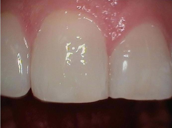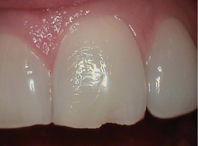 Patient chipped her front tooth. We used tooth colored filling material (composite) to rebuild her tooth in one visit.